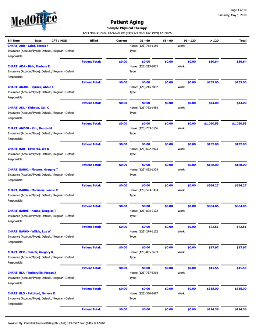 - Follow up on patients' payments and generate patient statements.